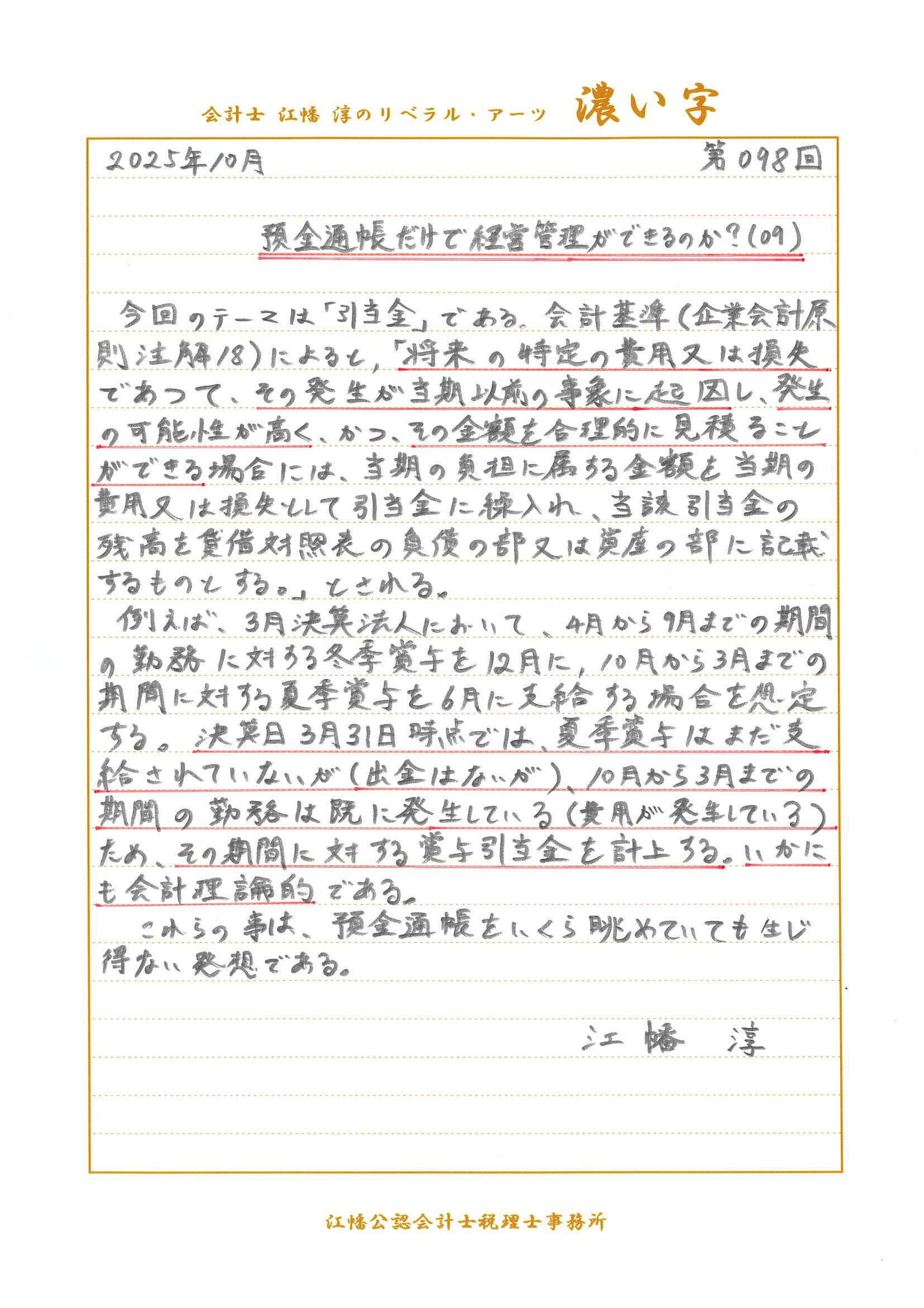 2025年10月号 第098回「預金通帳だけで経営管理ができるのか?(09)」
