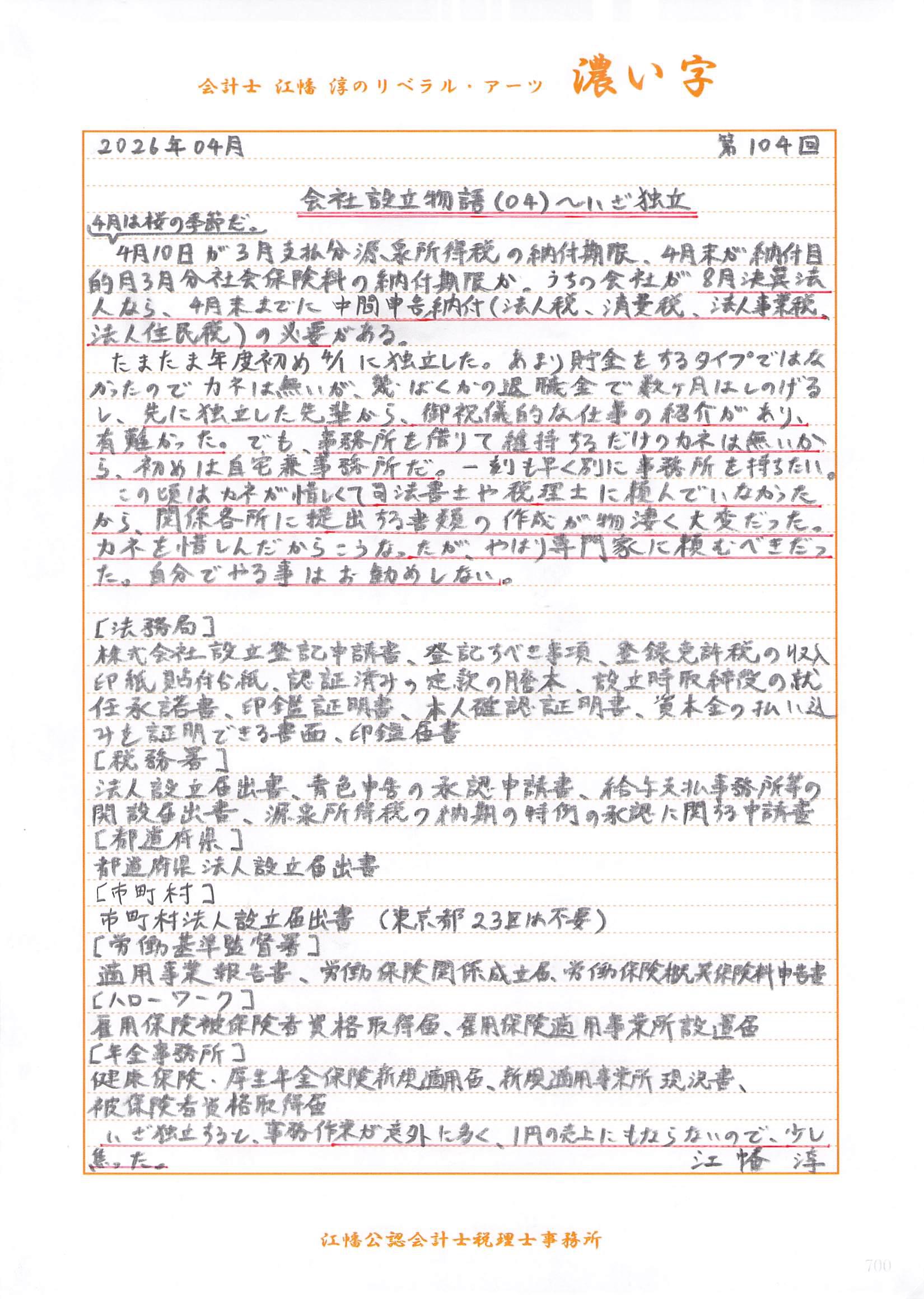 2026年04月号 第104回「会社設立物語」 (04) ~ いざ独立